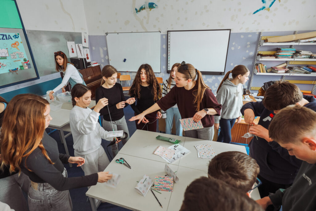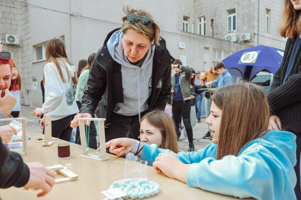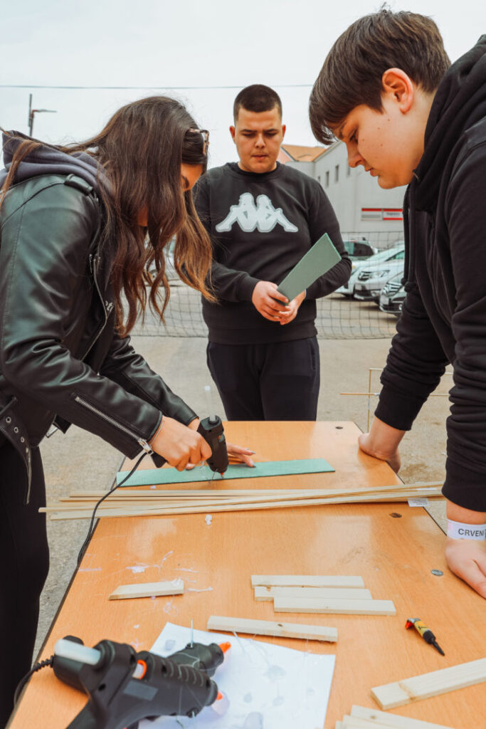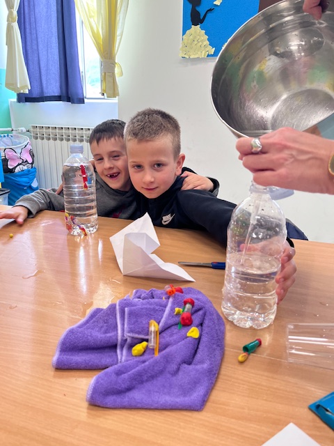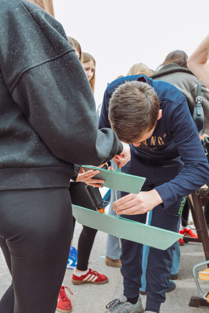 Program se odvijao paralelno u unutarnjim i vanjskim prostorima škole, a učenici su se izmjenjivali istražujući, eksperimentirajući u učionicama i na otvorenom. U 8 učionica djelatnici škole provodili su eksperimentalne aktivnosti s učenicima uz podršku tima udruge Osnaži-usavrši-integriraj za razvoj, dok su ispred škole bili postavljeni STEM šator i STEM kombi, gdje smo na 4 stanice s učenicima eksperimentirali na otvorenom.