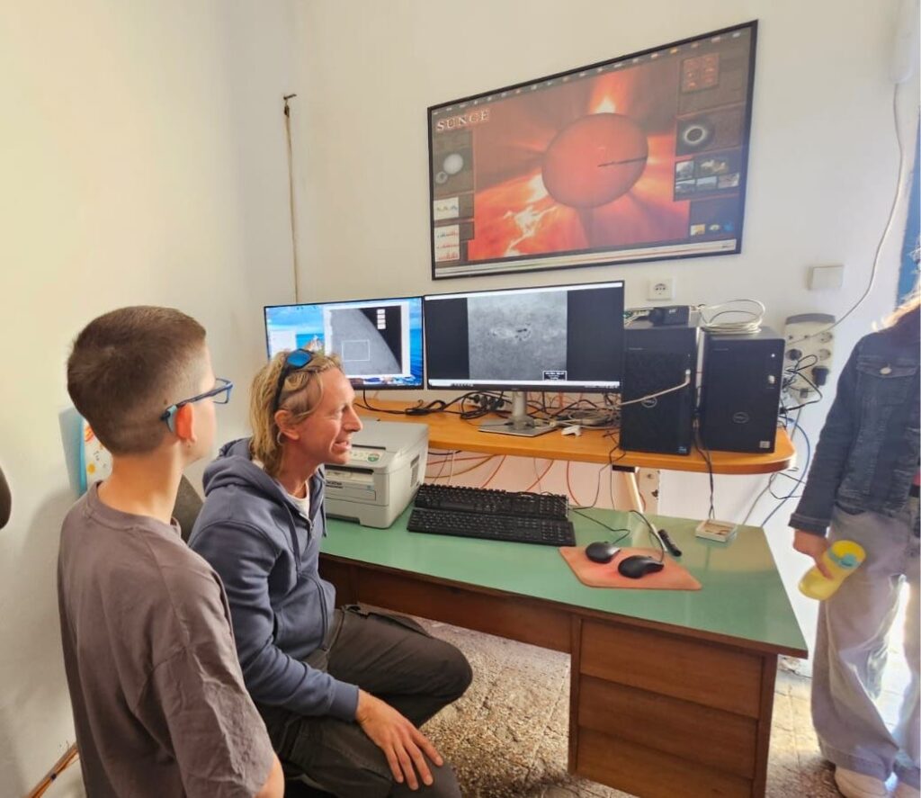 Učenici su pomoću modela složili redoslijed planeta Sunčevog sustava, usporedili red veličina planeta i njihovu udaljenost od Zemlje i Sunca. Učenici su povezali da je Sunce tri puta mlađe od svemira i da je daleko najmasivnije tijelo u Sunčevu sustavu te da je u njemu sadržano otprilike 99,8% ukupne mase Sunčeva sustava, a da je njegov promjer 109 puta veći od Zemljinog promjera. Znanstvenici opservatorija su upoznali učenike da su zvijezde nebeska tijela koja nastaju od vrlo vruće plazme (plina u kojem su elektroni i atomske jezgre uglavnom odvojeni), koje od raspadanja čuva njezina vlastita gravitacija. Učenici su se prisjetili da je Sunce građeno od jezgre u kojoj se stvara energija fuzijom vodika u helij. Znanstvenici su djeci pomoću video zapisa prikazali površinu Sunca – fotosferu na kojoj su vidljive Sunčeve pjege, zatim njegov vanjski dio, njegovu atmosferu, vijenac – Sunčevu koronu čija je temperatura nekoliko milijuna stupnjeva. Znanstvenici su djeci objasnili da je Sunce vrlo aktivna patuljasta zvijezda čija korona neprestano emitira plazmu, električki nabijene čestice u svemir tzv. Sunčev vjetar koji se povećava u vrijeme pojačane Sunčeve aktivnosti (koja se događa u ciklusima od otprilike 11 godina). Učenici su imali priliku pogledati snimljene zapise Sunčevih eksplozija, poznate kao Sunčev bljesak i koronin izbačaj mase, koji su opažani sa solarnog teleskopa opservatorija. Znanstvenici su upoznali učenike da Sunčeve eksplozije/erupcije odnosno tzv. geomagnetske oluje mogu biti opasne za svemirske letjelice te ometati kratkovalnu radio komunikaciju koja se koristi, primjerice, u zrakoplovstvu te su stoga ova opažanja na opservatoriju važna i za sigurnost zračnog prometa. Učenici su saznali jednu zanimljivost da se za jednog takvog događaja 1859. godine polarna svjetlost (koju uzrokuje velik koronin izbačaj) vidjela čak i na Kubi i Havajima, a da je 1989. godine geomagnetska oluja uzrokovala devetosatni nestanak struje u Quebecu. Učenici su se prisjetili da Zemljina atmosfera štiti Zemlju od ultraljubičastog (UV) zračenja koje dolazi sa Sunca, a Zemljine magnetske silnice od izravnog prolaska električki nabijenih čestica iz svemira. Učenici su imali priliku doznati da se čestice niz silnice mogu probiti do Zemljinih polova i u sudaru s plinovima iz atmosfere izazvati pojavu polarne svjetlosti. Učenici su potom obišli refraktorski solarni teleskop koji se nalazi u povijesnoj tvrđavi Napoljun, kojem je namjena detaljno praćenje kromosferskih i fotosferskih pojava kao što su Sunčevi bljeskovi.