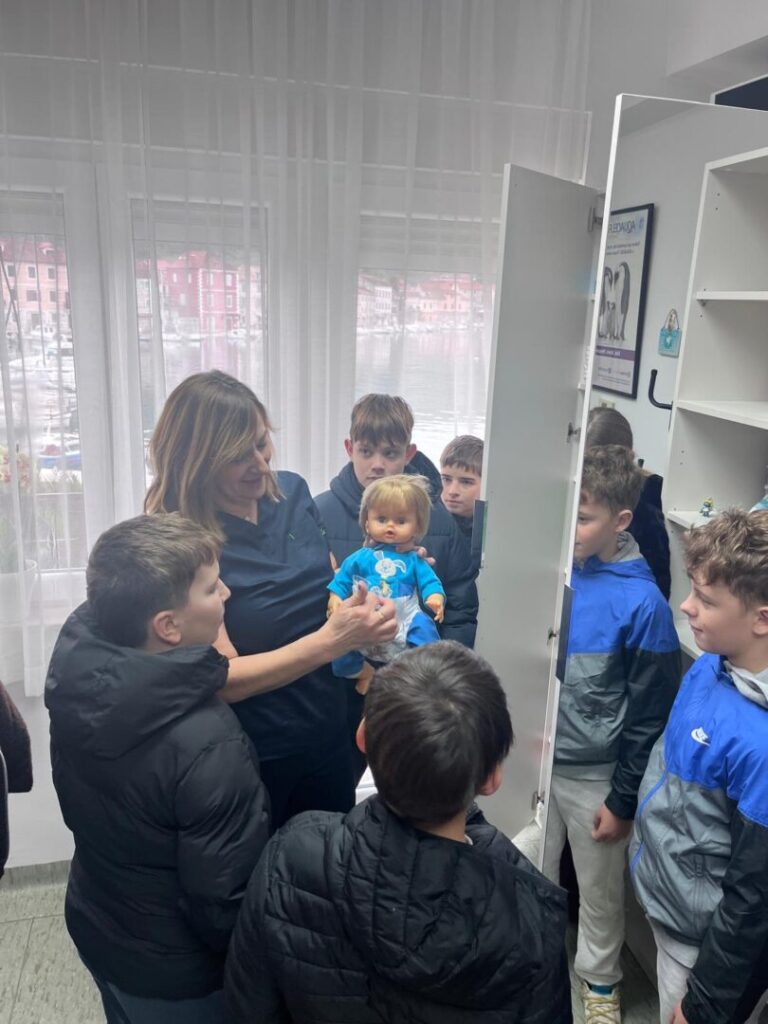 Učenici 6. a razreda danas su, u pratnji vjeroučiteljice Marije Bogdan i učiteljice Antonije Beroš, posjetili sestru Marinu te se pobliže upoznali s njezinim radom. Zainteresirani učenici imali su priliku saznati više o njezinim svakodnevnim obvezama – radu s trudnicama, posjetima nakon poroda, pregledima beba i praćenju njihova razvoja.