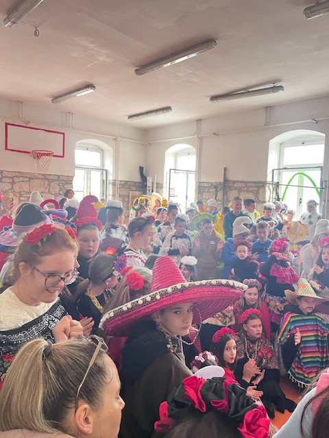 U utorak, 17.02. matična je škola zajedno s područnim školama održala Projektni dan – Maškare. Niži razredi i područna škola Dol zamaskirali su se u meksikance, dok je tema za više razrede bila “Likovi iz filmova, crtića i knjiga”. Područna škola Vrbanj zamaskirala se u McDonald’s. U matičnoj školi učenici su se mogli okušati u karaokama te smo svi zajedno već tradicionalno uživali u krafnama. Nakon toga pridružili smo se povorci zajedno s DV Sardelice, a na trgu Škor svaki je razred imao svoju koreografiju kako bi predstavio svoju masku.