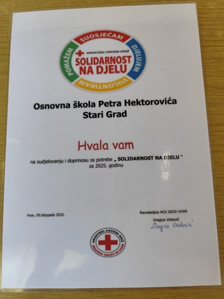 listopada 2025. godine. Učenici su na području Starog Grada i Dola prikupili 1.413,25 eura.